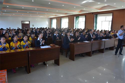 首先陈部长宣读了全区受表彰的先进单位和先进个人名单,区小学、区中学、区幼儿园德育先进工作者获得了表彰,主席台上领导亲自颁奖,优秀教师们分别上台授奖。